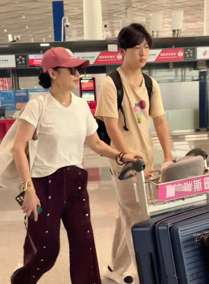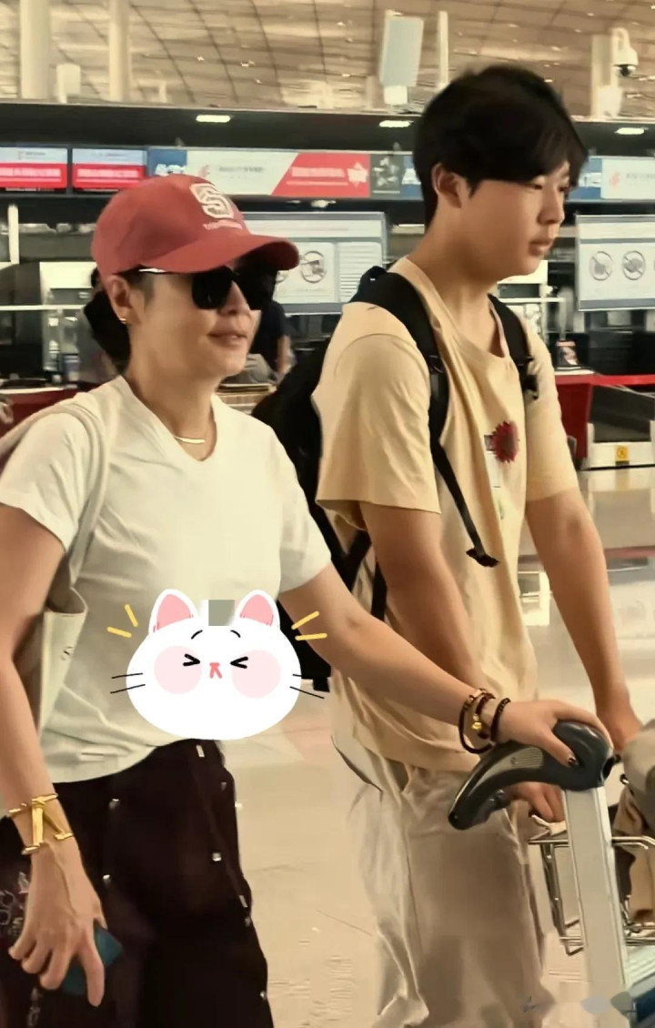 梁静管虎机场送儿子上学, 16岁犇犇身高190, 跟管虎共用一张脸